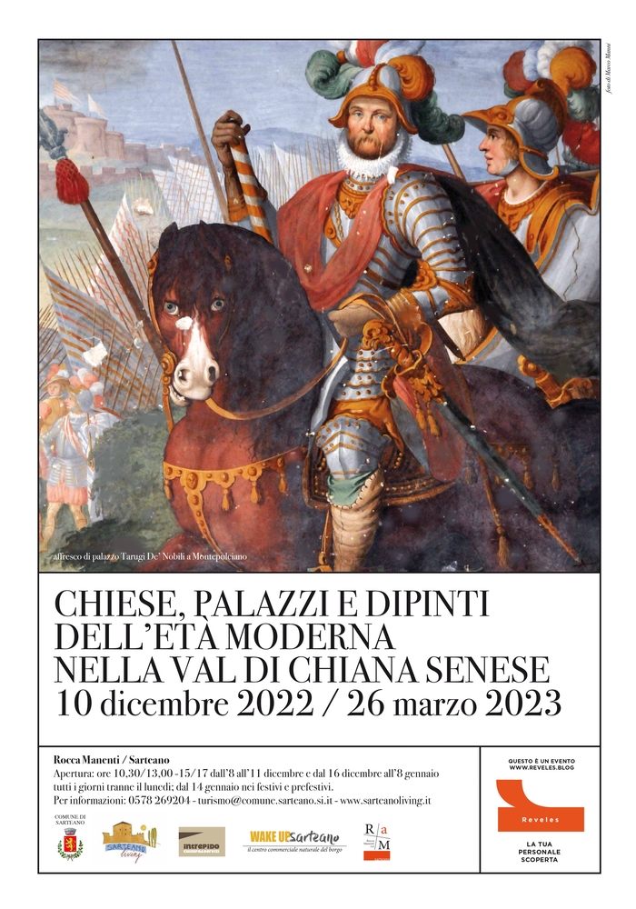 Ma si potrà anche scoprire altro. Il 10 dicembre verrà inaugura anche una singolare mostra fotografica dal titolo “Chiese, palazzi e dipinti dell’età moderna nella Valdichiana Senese”, curata da Francesco Salerno dell’Università di Siena, che permetterà di ammirare, presso la Rocca Manenti di Sarteano, chiese, palazzi e dipinti, anche conservati nei palazzi privati del territorio. Grazie ad un lavoro di ricognizione nei luoghi e spazi nella Valdichiana Senese, la mostra illustra i magnifici il patrimonio culturale dell’area, e permette di riscoprire i fasti pittorici ed architettonici dal ‘500 al ’600; la mostra sarà visitabile dal 10 dicembre 2022 al 26 marzo 2023.