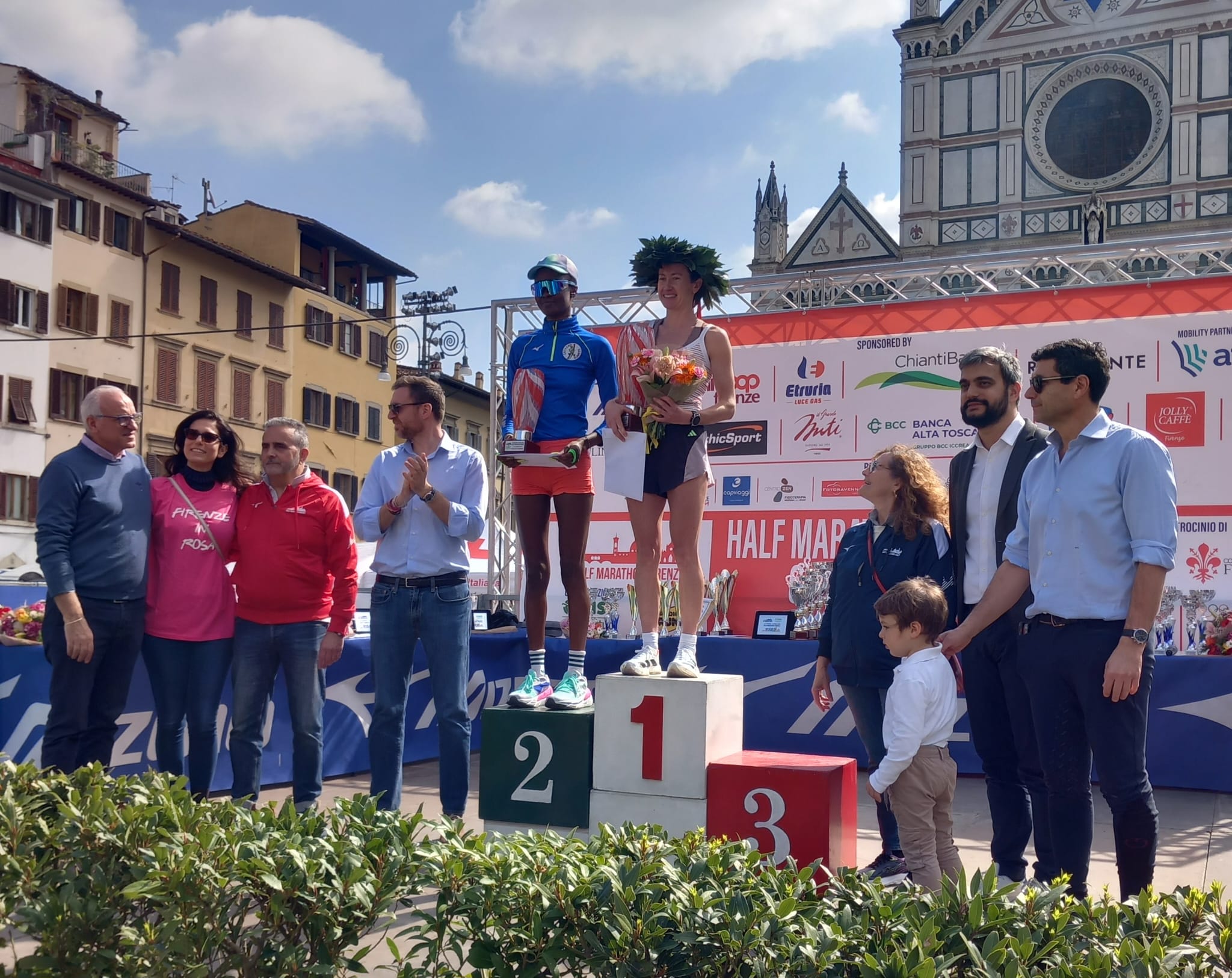 Dopo poco più di un’ora, col nuovo record della corsa maschile, i primi sono arrivati in piazza Santa Croce accolti dai volontari di Firenze in Rosa Onlus che hanno messo loro al collo le medaglie di partecipazione. Gli atleti hanno percorso una sorta di doppio anello tutto per le vie del centro storico per completare la distanza. Una formula studiata e collaudata per limitare e di fatto annullare quasi del tutto i disagi legati alle deviazioni del traffico. All’arrivo anche Marco Burgassi, presidente commissione cultura e sport del Comune di Firenze e Cosimo Guccione, presidente del Consiglio Comunale di Firenze, Nicola Armentano delegato allo sport della Città Metropolitana di Firenze.COSI’ ALL’ARRIVO