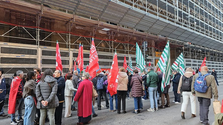 Firenze, 13-11-2025 - Cgil Firenze, Cisl Firenze-Prato e Uil Toscana oggi hanno effettuato un presidio a Firenze davanti alla Prefettura per ribadire che “educare al rispetto e alla libertà è prevenzione contro la violenza di genere”.